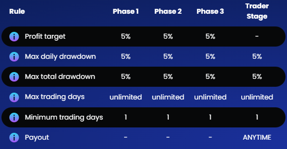 - No Trade Copiers – This implies that traders are prohibited from utilizing the services of Trade Copiers while engaged in trading activities. (Only during all three evaluation phases)