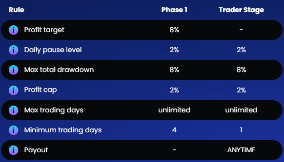 - First Payout After 8 Days on Two-step & Three-step Evaluation