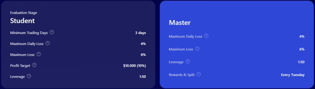 | Maximum Loss | 5% (Trailing)(Scaleable up to 9%) | 6% (Trailing) |